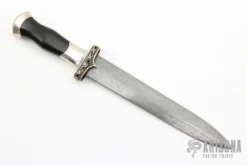 Mad Dog and Jake made twelve of these custom 25th Anniversary Panthers this one is #001. The knife has a 10” file worked mirror finish blade, custom etching (aka Panthera), custom red/black FR4 handle and two sheaths. Sharpened top edge. .25″ Blade Stock. 1.609″ Blade Depth. All with the standard “Mad Dog” signature on the ricasso. No duplicates will ever be made. Includes a Mad Dog zippered case. Has two small spots on the b-side of the blade, otherwise excellent condition.