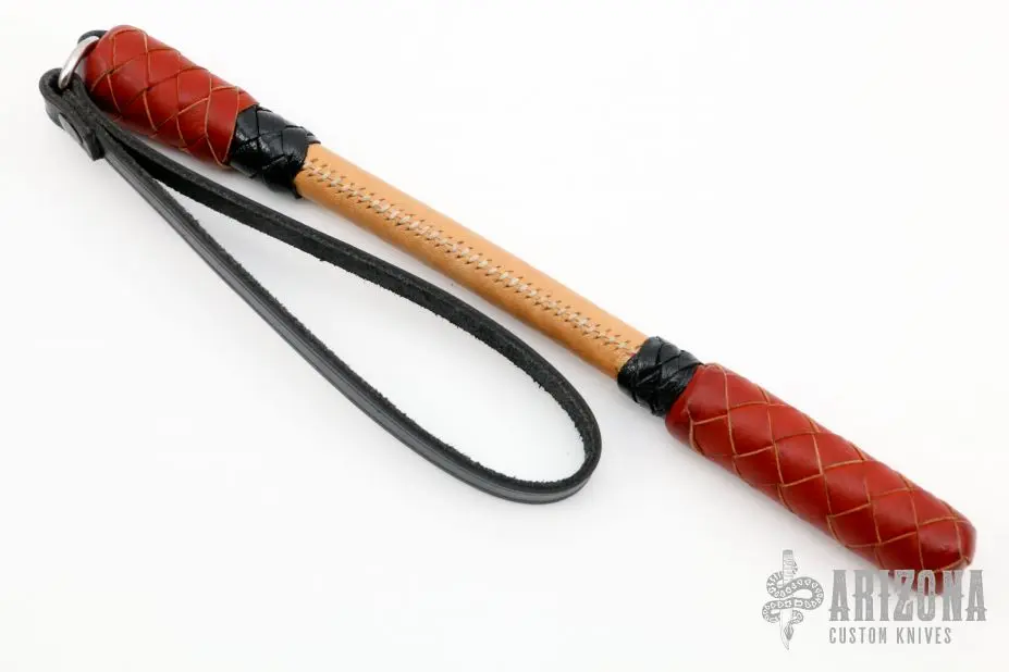 10″ Black and Brown Blackjack by DD Whips. Spring core black and brown kangaroo leather covered blackjack with cowhide wrist strap and grip. New from maker.