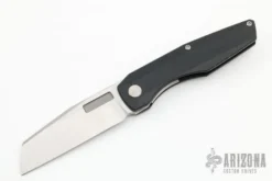 This Axon Second Run Folder by Vero Engineering features a satin finished blade with notched thumbrest and thumbhole. The handle has carbon fiber scales with inlaid liner, titanium tip up clip with hidden screws, titanium backspacer. Rides on bearings, nice detent, lockup and blade seating. Comes with zippered case and COA #1452. Excellent condition.