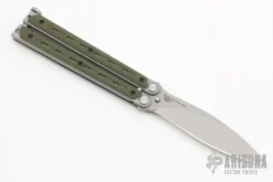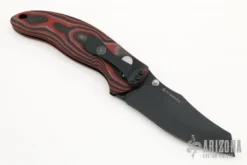 This Basilisk R Ti from HOM Design features a gold recurve clip point 154 CM blade with swedge. The handle is comprised of DLC titanium scales over gold stainless steel backspacers and T latch in pommel. Includes original box and papers. Excellent condition.