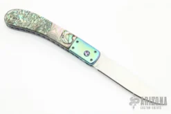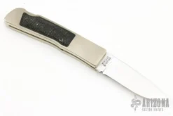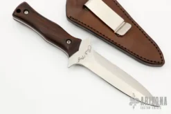 This knife by Cattaraugus was made to commemorate their 135th Anniversary. It features a satin finished blade with false top edge, .083″ blade stock and 1.349″ blade depth, full tang construction. The handle has a stainless steel guard and jigged bone scales. Comes with a brown leather sheath and zippered case. Excellent condition. One of 250.