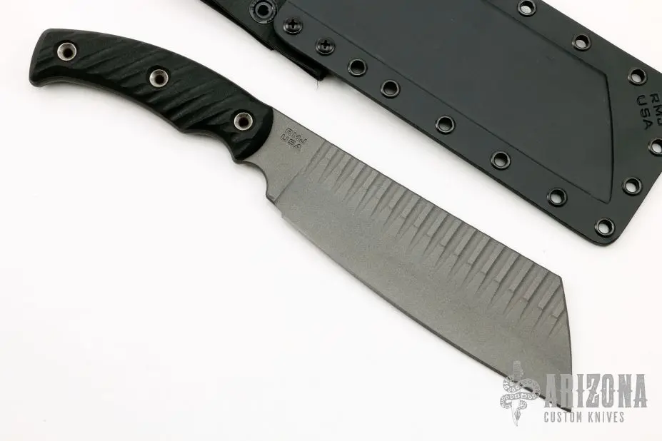 Da Choppa is designed with chopping prowess, and lightweight carry in mind. The RMJ rendition of this classic design makes for a terrific all around blade. At 12″ overall, featuring a 7 3/8″ blade made from 80CRV2 Carbon Steel and weighing in at a svelte 10.5 ounces, this is a knife for any campsite, hike or outdoor adventure.Â