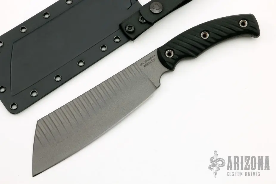 The full-tang construction incorporates G-10, 3D machined handle scales which offer the great grip in wet or dry conditions. The blade has a Tungsten Cerakote finish for corrosion resistance and durability and an added low visibility look. Included is a molded kydex scabbard with low ride belt attachments.