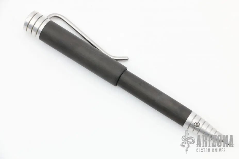 This pen by Warren Thomas is made from carbon fiber and aluminum . The butt of the pen unscrews and has a titanium spike. Excellent condition.
