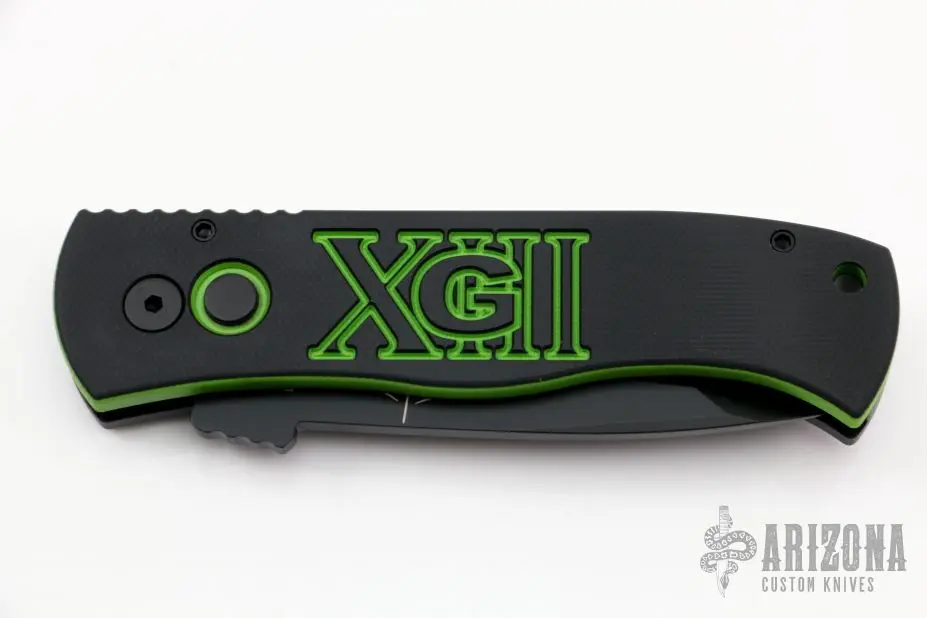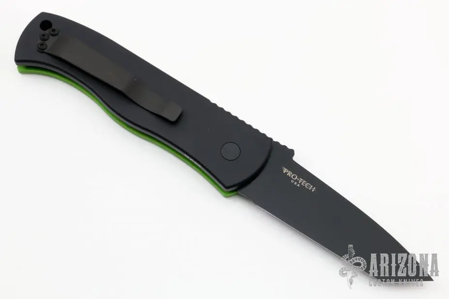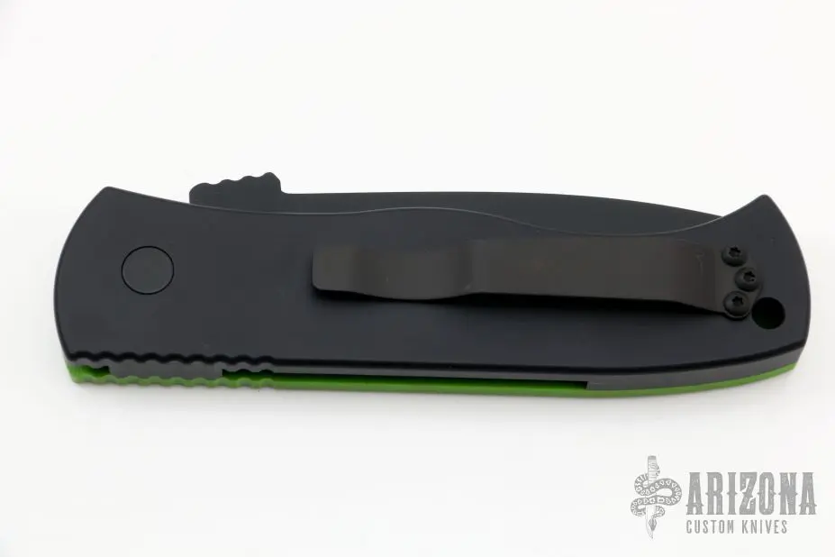 This Emerson/Pro-Tech CQC7 automatic has a black chisel ground tanto style blade. Â The handle has an aluminum and G-10 frame with a black stainless steel tip up pocket clip. Â Includes the original box. Â New From Maker!Â