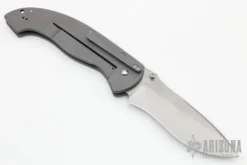 This Front Pocket Coke Bottle Prototype by Daniel Keown features a hand rub satin finished blade with nail nick. The handle has 416 stainless steel bolsters with integral liners, jigged bone covers, stainless steel spring, stainless steel pins. Has half-stop, flush in all positions. Comes with a zippered case. New from maker at the 2022 NCKS.