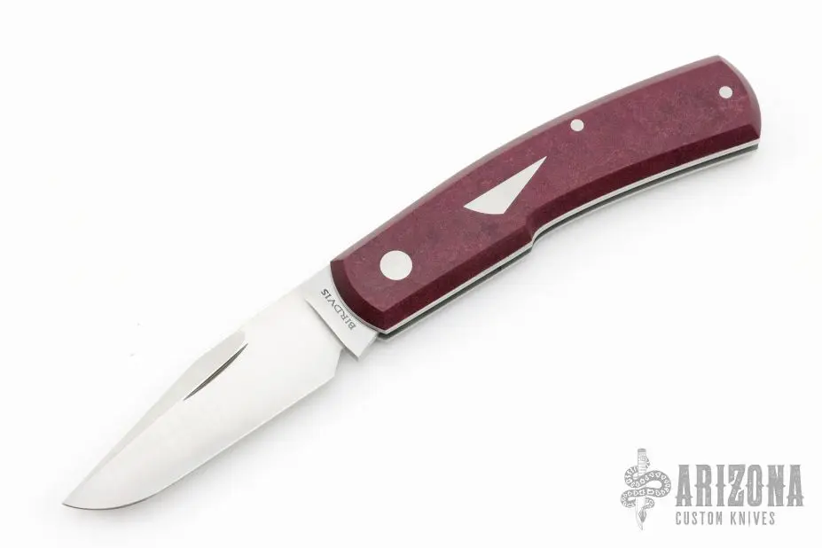 This Harper slipjoint by Nick Timpson of Birdvis Knives features a satin finished blade with nail nick. The handle has Red Richlite covers, white G-10 liners, stainless steel escutcheon, stainless steel liners and spring. Has half-stop, flush in all positions. Comes with original box and COA dated 1/2023. Excellent condition.