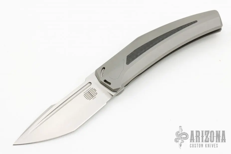 The Krypton was designed by Tashi Bharucha and manufactured by Reate Knives.This knife features a carbon fiber inlay, a titanium frame and a matching tip up titanium pocket clip. The blade is made from American CPM-145 stainless steel, which is widely considered one of the best EDC knife steels, thanks to its edge retention and ease of sharpening. The knife opens with the use of Lee Williams’ Kick Stop flipper, which is there when the knife is closed, but once it’s opened, disappears neatly into the handle to maintain those sweet, sweet lines. Comes with original box and zippered case. Has a couple light scuffs, otherwise excellent condition.