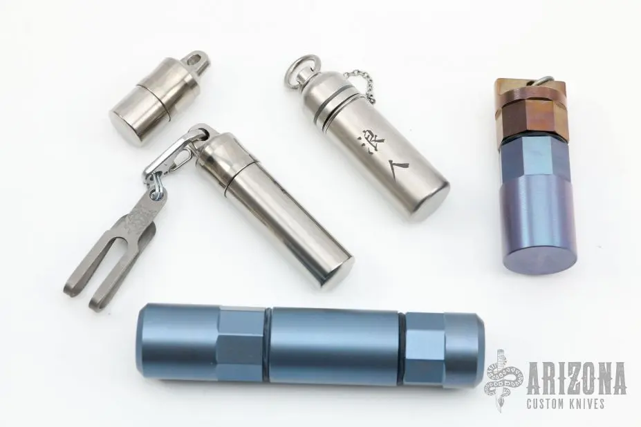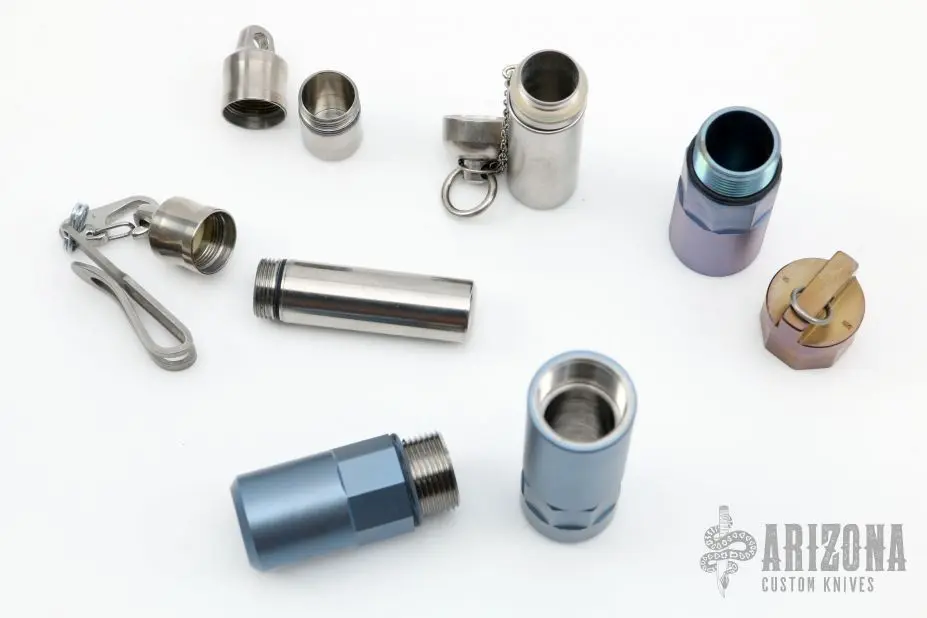 Lot of 5 Titanium Stash Cans, in varying size and shape. Excellent condition.Â