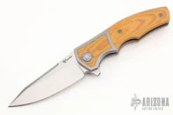 This Mini Crossroads flipper by Reate is a Kirby Lambert design, it features a satin finished blade with a notched flipper. The handle has a blasted titanium frame, white micarta scales, anodized titanium pivot collars, blasted titanium tip up clip and floating backspacer. Rides on bearings, nice detent, lockup and blade seating. Comes with original box and zippered case. Excellent condition.