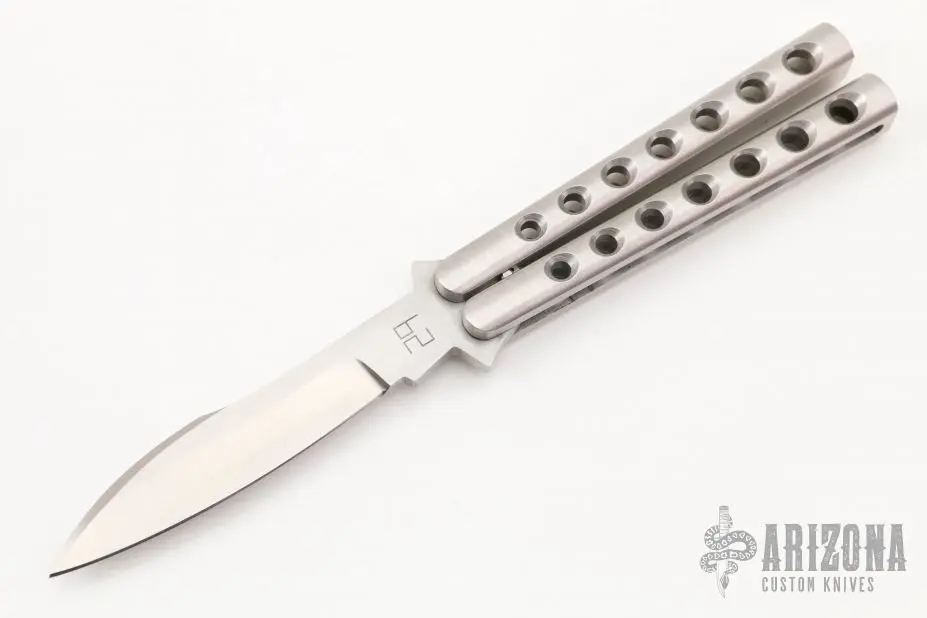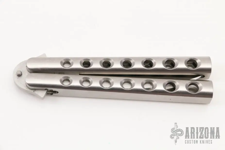 This balisong by 29 Knives features a satin finished blade with swedge. The handle is composed of satin finished integral stainless steel. Excellent work. Has some scratches, otherwise the knife is in excellent condition.Â