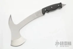 This Prototype Axe by Walter Brend is #11 and dated 06/14. Has a tumble finished blade with spike on the other end, .267″ blade stock. The handle has carbon fiber scales and a lanyard hole, extended tang with skull crusher at butt of handle. Comes with kydex sheath. Excellent condition.