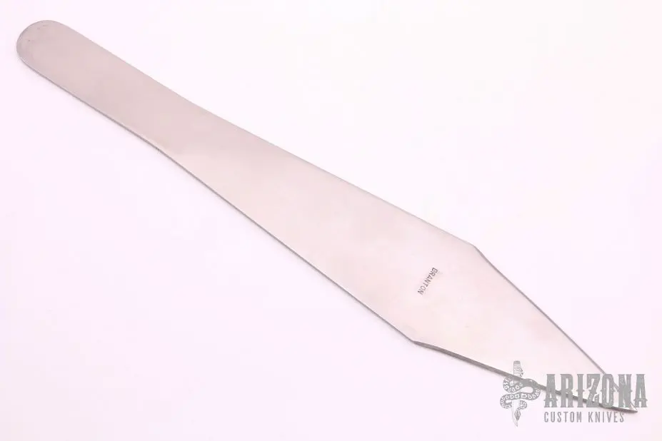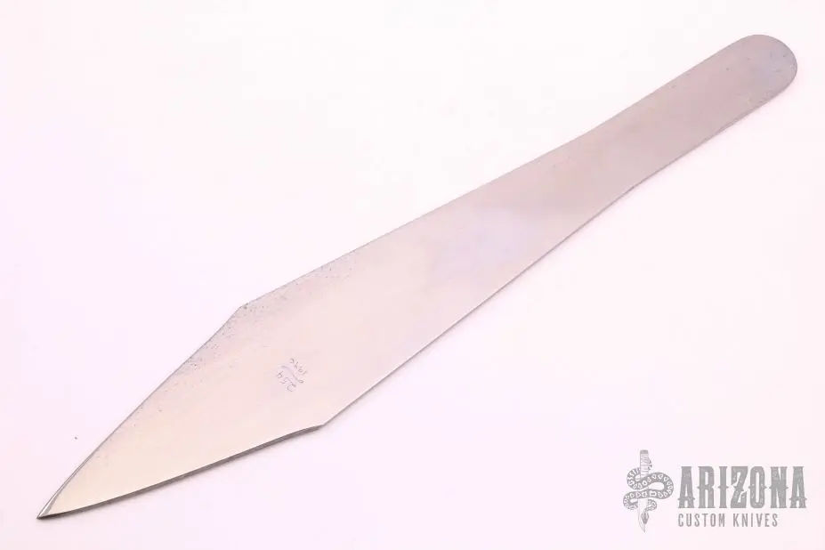This throwing knife by Bobby Branton features a mirror polished blade, .188″ blade stock and 2.015″ blade depth, full tang construction. Has some light oxidation, otherwise excellent condition. #254 dated 1996.