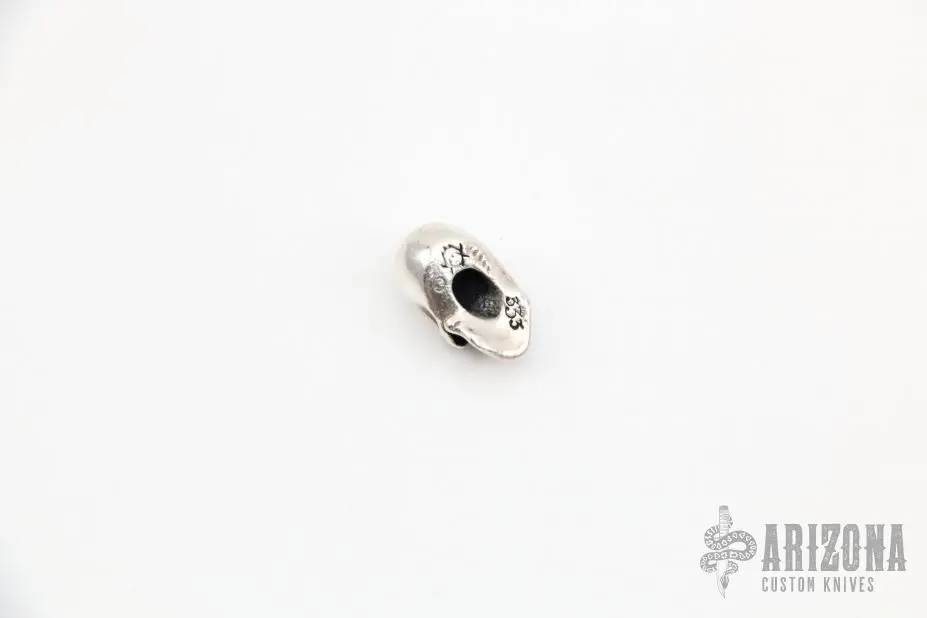 This sterling silver skull bead features a lightning bolt front, 333 stamp, has some patina. Comes with ball chain, and soft pouch. Excellent condition.Â