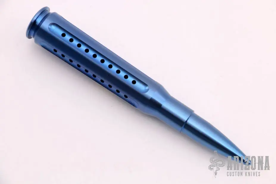 This is a 50 BMG titanium holder by Steven Kelly. Does not come with inserts. Has a torx head screw cover and a screw with a lanyard/keyring hole. New from maker. Comes with original packaging.
