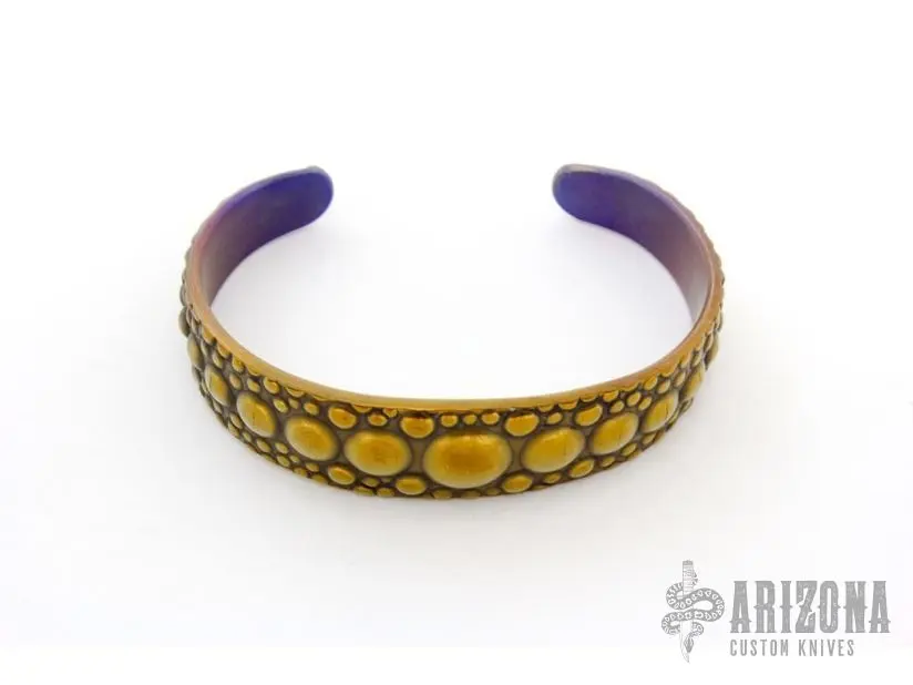 This bracelet has a 1″ opening and is 2 1/8″ accross. Brand new from the maker at the 2014 Blade Show.