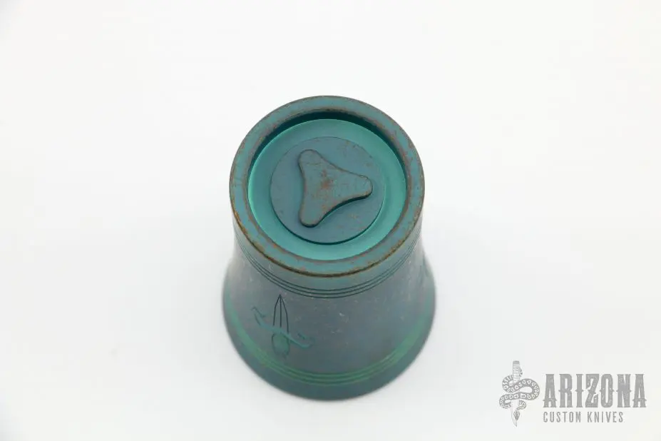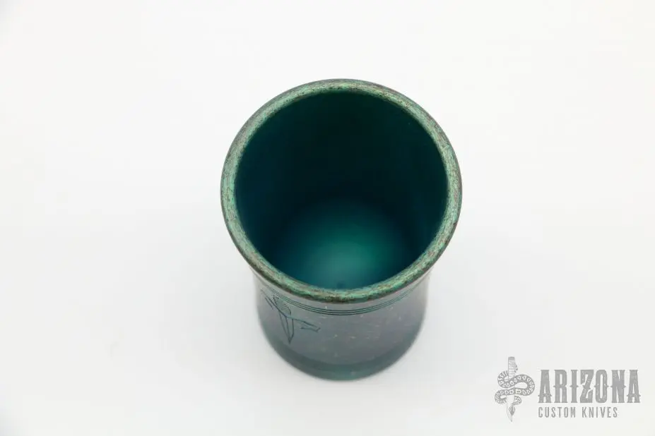 Anodized titanium shot glass with Marfione Dagger Logo. New condition. Â Comes with original box.