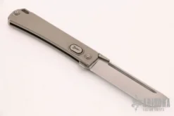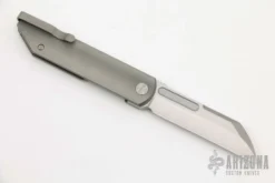 This Apache Front Flipper was designed by Enrique Pena, manufactured by Reate Knives and features Lee Williams Kickstop. Â This knife features a satin finished blade with notched thumbrest and flipper tab. Â The handle has a jigged titanium frame with a titanium backspacer and a titanium tip up pocket clip. Â The knife opens with the use of Lee Williams’ Kick Stop flipper. Â Includes a Pena X-Series padded box. Excellent condition.
